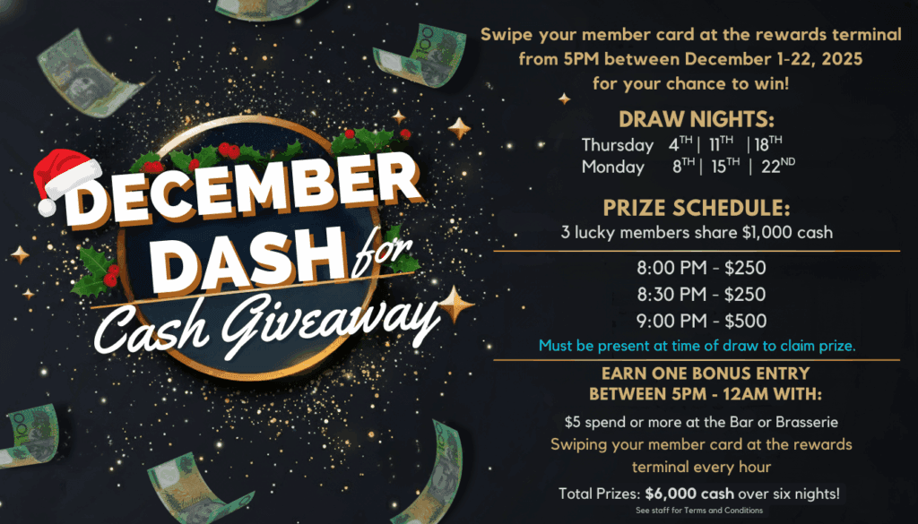 Get ready for our December DASH for CASH Giveaway at Penshurst RSL!