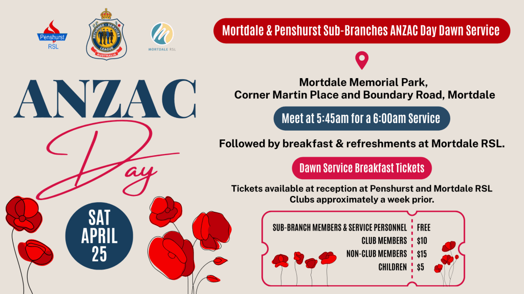 Following the service, please join us for breakfast & refreshments at Mortdale RSL Club